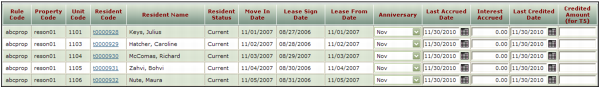 4 Click Load. A table showing the residents' deposit interest information that will be converted appears.