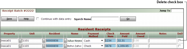 6 Click Save. Voyager asks you to confirm that you want to delete a receipt.