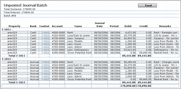 1 In the appropriate batch screen, click the Report button. The report appears.
