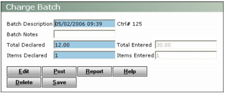 Click Submit. The Batch Charge or Charge Batch screen appears.
