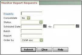 Scheduled date Type or select the date range during which the reports were scheduled (mm/dd/yy) for processing. To monitor reports scheduled for one day, enter the same date in both fields.