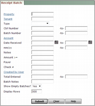 l Right of the Batch Description field on the Batch Receipt or Summary Batch Receipt screen (labeled Ctrl#)