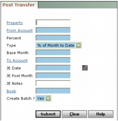 From Account Type or select the G/L account from which you want to post the transfer. The amount in this account will be reduced by the amount of the transfer.