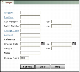 Ctrl Number Type a range of charge control numbers. Control numbers are generated when you save a charge in a batch. Control numbers appear in the top right of the