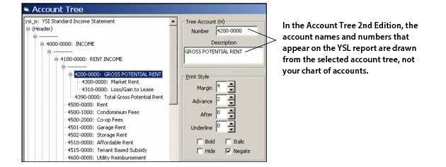 The original method, Account Tree 1st Edition, specifies the use of the Tree and TreeFunction functions.The Account Tree 2nd Edition, available in YSL Classic 2.8 and later, is based on the familiar YSL financial functions, and offers an alternative and perhaps a simpler method for creating account tree reports.Advantages of the Account Tree 2nd Edition method: