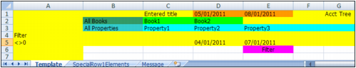 c YSL.Net processes a worksheet named SpecialRow1Elements. This worksheet is not included in the generated YSL report. Only Columns A and B of this sheet are used. The following requirements must be met when creating entries that populate Row 1 of the report:
