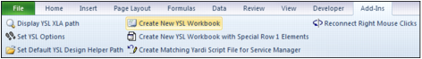 2 Click Create New YSL Workbook. A new YSL report is displayed, with Rows 1-5 populated with the required settings.