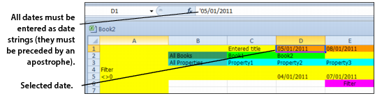 In YSL reports, you must enter dates (SDt1 and SDt2 parameter fields) as date strings. This means that the date entered in a function parameter must be preceded by an apostrophe ('). For example, you would enter the day 10/15/01 as '10/15/01. YSL only recognizes dates when they are in string form, and the preceding apostrophe indicates to the program that what follows is a date string, as shown in the following graphic.