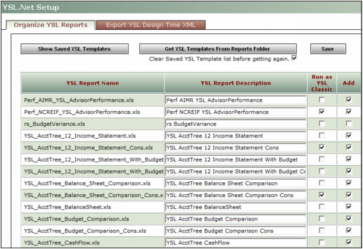3 Click Get YSL Templates From Reports Folder. The following graphic appears.